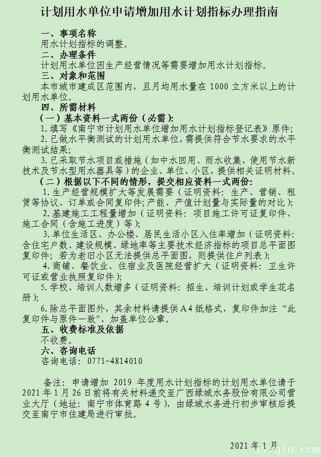 近日,南宁市部分企业(单位)收到了南宁绿城水务给予的年度加价水费征缴通知单,以及提高用水指标、减免加价水费办理的材料及流程说明(见下图)。按照南宁市人大2015年颁布并实施《南宁市城市供水节水条例》中第二十三条:“计划用水单位申请增加用水计划指标的,应当具备下列条件:(五)水平衡测试结果符合节水要求”。同时咨询了解到南宁市住建局相关人员的说明,开展水平衡测试工作作为此次用水指标调整的必备条件。